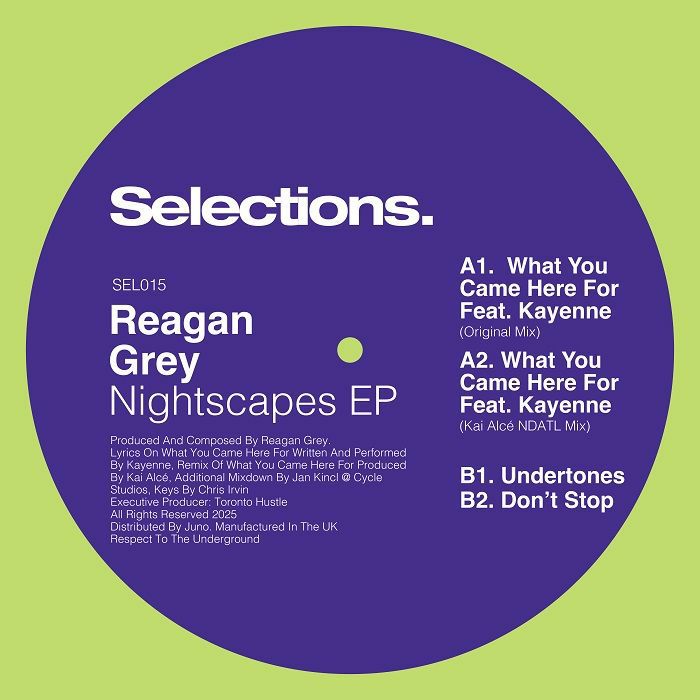 Toronto-based producer opens with old school organ stabs, hints of garage house, and a soaring vocal from KAYENNE on "WHAT YOU CAME HERE FOR", backed by a remix from KAI ALCE. Two more classic house vibes carry the B-side. (SELECTIONS)